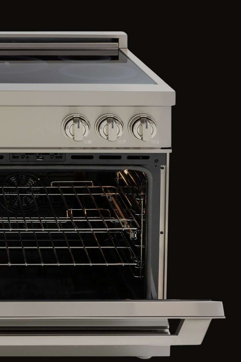 The induction cooktop uses advanced magnetic technology to heat cookware directly, boiling water in under 90 seconds while maintaining unmatched low-heat precision for simmering delicate sauces. Its European ceramic glass surface, made in France, is tough, scratch-resistant, and cool to the touch when cookware is removed — offering industry-leading safety and effortless cleaning. With professional cast-metal knobs, subtle LED accents, and haptic feedback, you’ll enjoy both form and function in your everyday cooking.